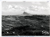 La vallata del Rubicone, a destra Sogliano, in alto San Marino